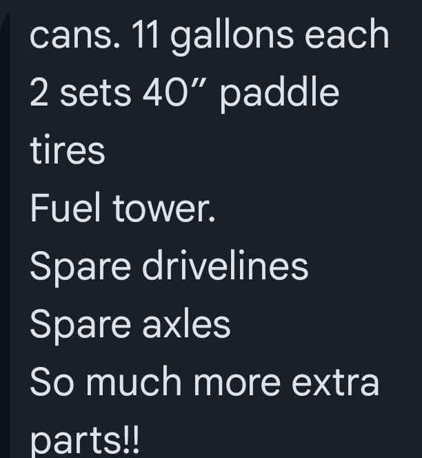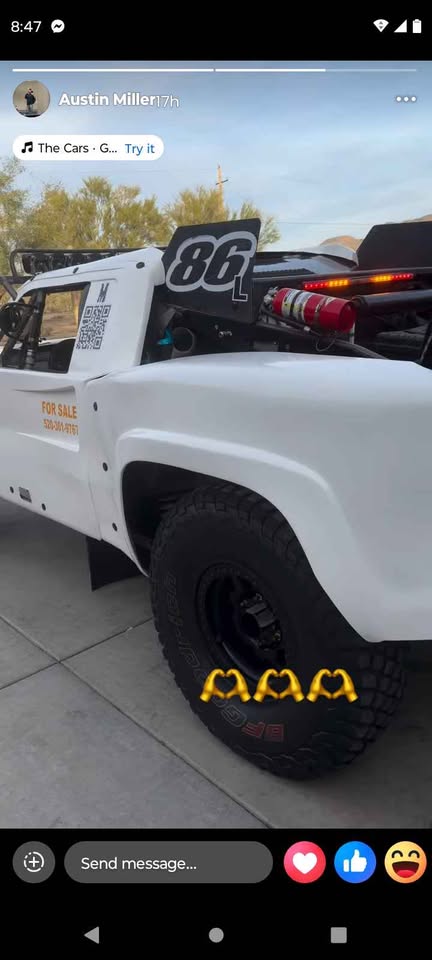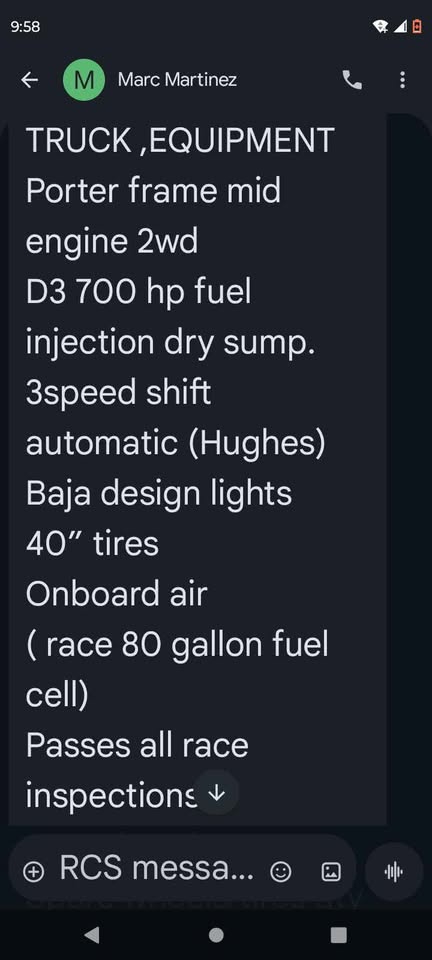2001 PORTER/Jeffries Mid engine 2wd Unlimited TT 🏁 Race History! Score Championship! Damen Jeffries Silver Bullet! Perfect 4 Norra! Serious off-road setup ready to race! Porter/Jeffries -engine 2WD truck is powered by a D3 700HP fuel-injected dry-sump engine & paired with a Hughes 3-speed automatic transmission. Fully race-prepped & passes all race inspections. Porter frame – mid-engine 2WD D3 700HP fuel injection, dry sump 3-speed Hughes automatic 40” tires Baja Design lights Onboard air 88-gallon race fuel cell Passes all race inspections Spares & Equipment Included: Spare hood 10 spare wheels/tires Spare rear fenders New spare transmission Spare rear gear set Spare torque converter Spare King bypass shocks Spare King coilovers Spare 4-link setup (10) Quick race fuel cans – 11 gallons each (2) Sets of 40” paddle tires Fuel tower Spare drivelines & axles Tons of extra parts & race support gear included Race ready $199k obo!https://www.facebook.com/share/p/1DTUcrgX23/