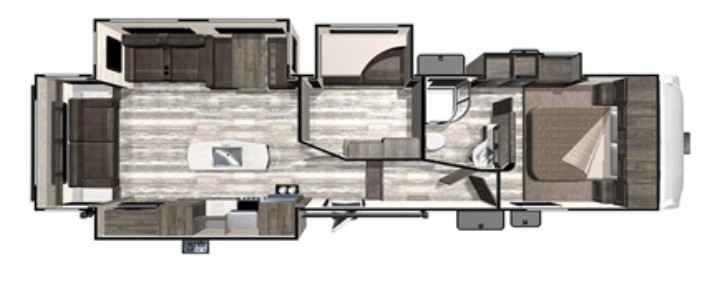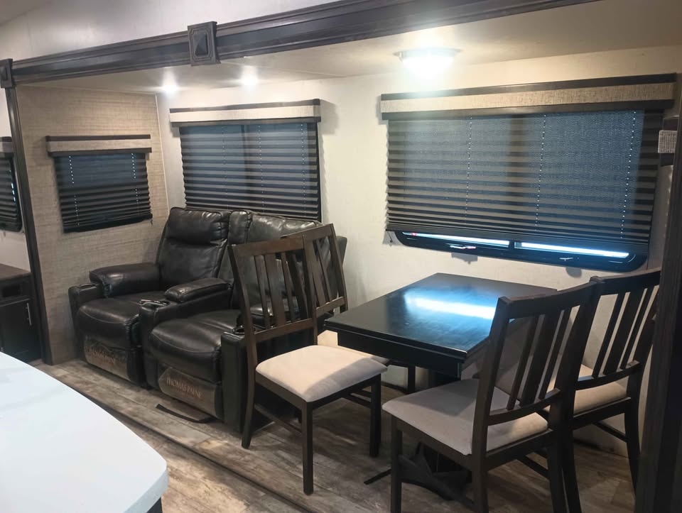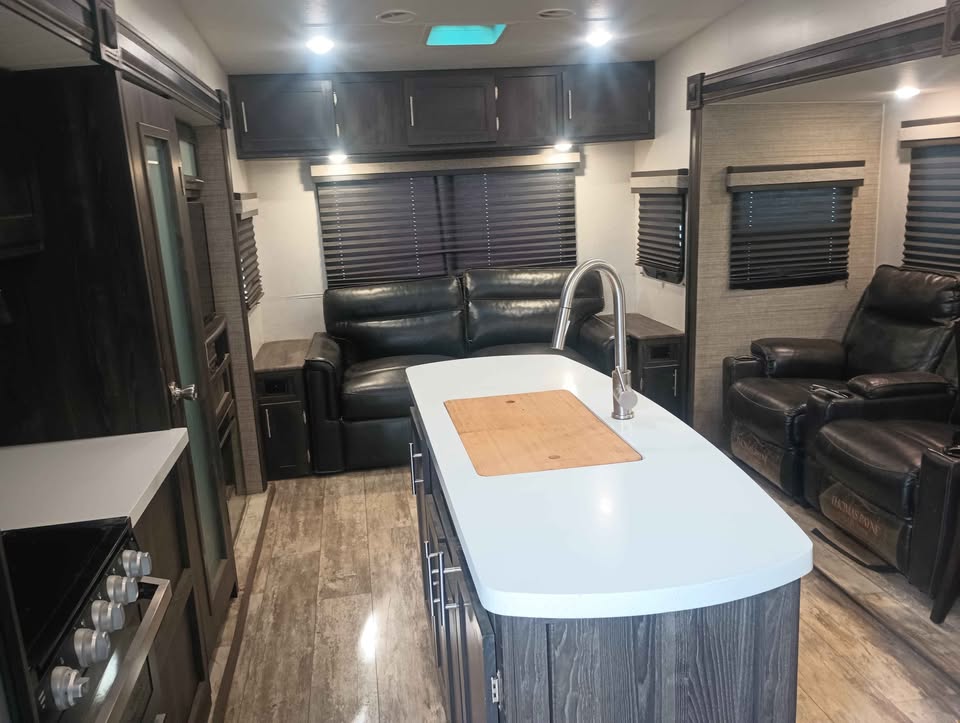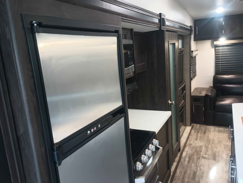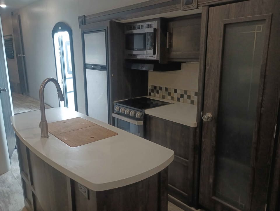 4 slide-outs and a mid-bunkhouse, perfect for full-time living, extended trips, or work-from-RV setups. Key Features: πŸ›οΈ Sleeps 8–9 – King/Queen master, mid-bunk with loft, and rear sleeper sofa 🏑 Mid-Bunkhouse – Great for kids, guests, or a home office 🍽️ Large Kitchen Island with solid surface counters ❄️ 20 cu. ft. Residential Refrigerator πŸŽ₯ Rear living room with theater seating and sleeper sofa 🌞 20’ Power Awning & Outdoor Kitchen with TV mount ❄️ 4-Season Package – Heated/enclosed underbelly 🧱 Wide-body frame, lightweight design (half-ton towable) πŸ“¦ Tons of storage and keyed-alike compartments Specs: Length: ~37 ft Dry Weight: ~9,515 lbs 4 Slide-Outs Sleeps up to 9 This is a super versatile layout